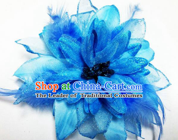 Traditional Chinese Folk Dance Headwear Yangko Hair Accessories, Chinese Classical Dance Blue Feather Headpiece Hair Pin for Women