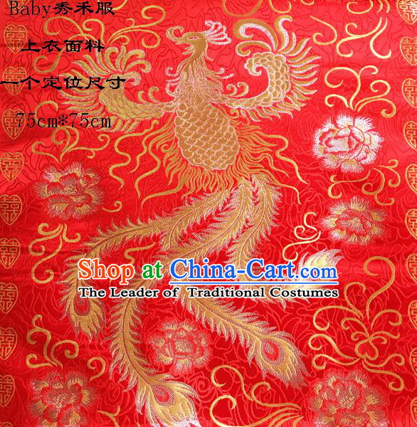 Traditional Asian Chinese Handmade Embroidery Phoenix Silk Satin Tang Suit Xiuhe Suit Red Fabric, Nanjing Brocade Ancient Costume Hanfu Cheongsam Cloth Material